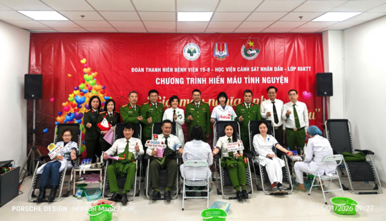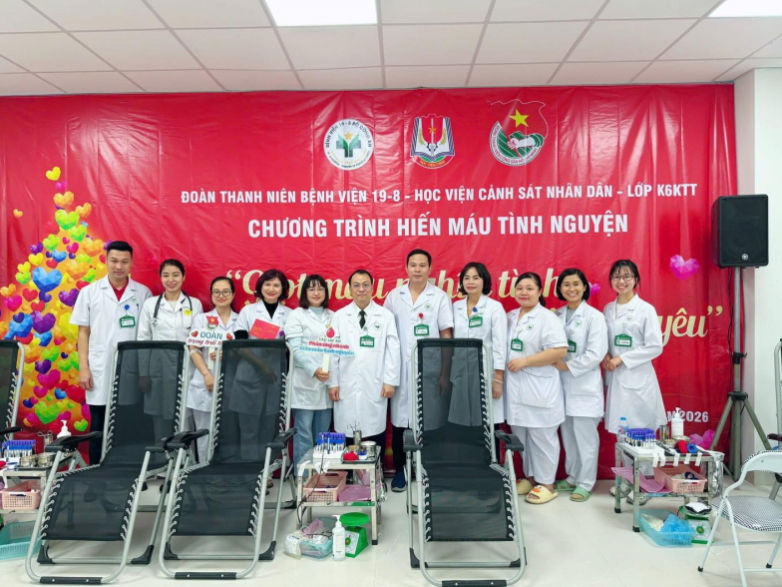 Ngày 15/1, Bệnh viện 19-8 phối hợp với Học viện Cảnh sát nhân dân (CSND), lớp Cao cấp Chính trị không tập trung 2 Khoá 6 (Học viện CSND) tổ chức chương trình "Giọt máu nghĩa tình vì đồng đội thân yêu".
