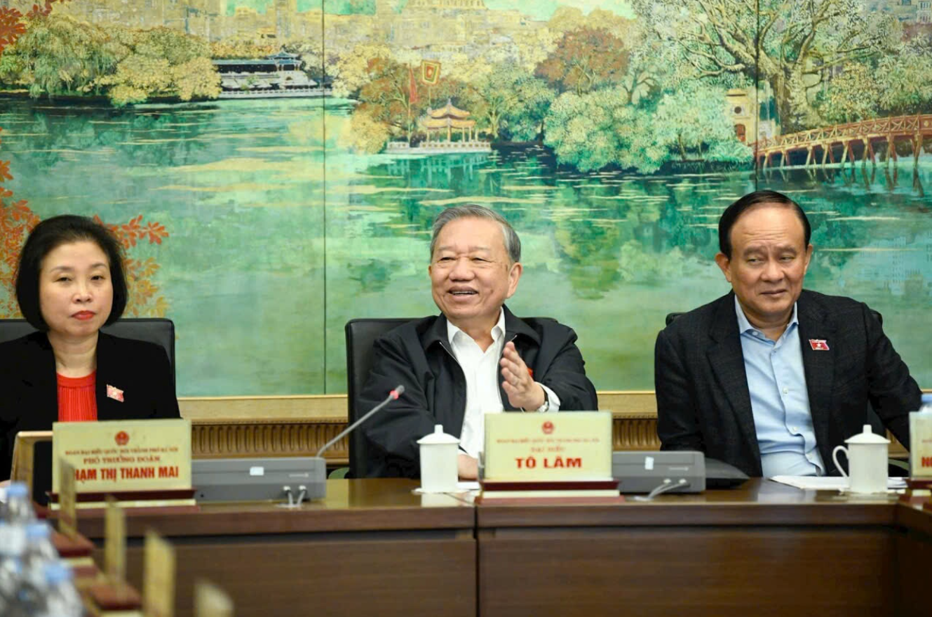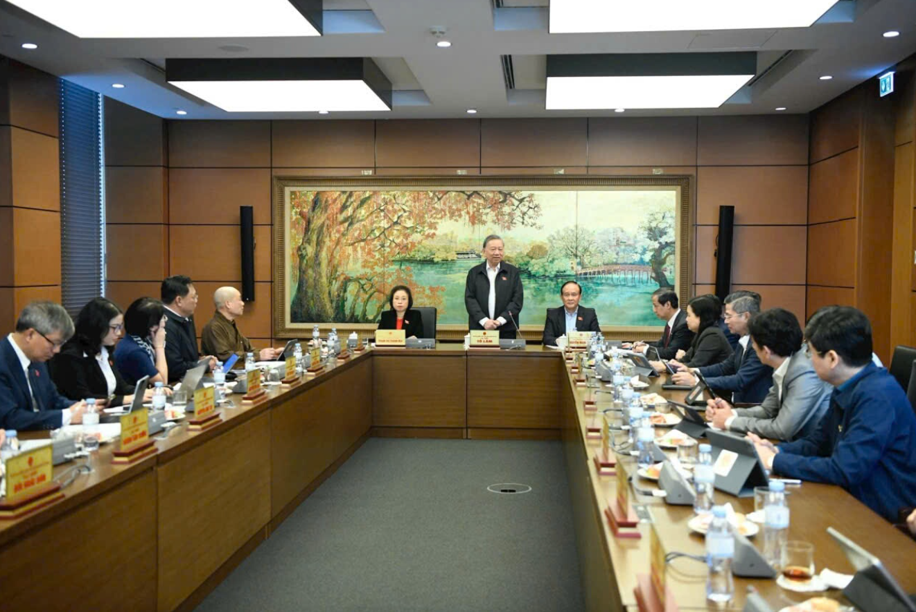 Tổng Bí thư Tô Lâm trao đổi và chia sẻ nhiều vấn đề mà các đại biểu Quốc hội quan tâm đến 2 chương trình mục tiêu quốc gia về giáo dục và y tế. Ảnh: Như Ý